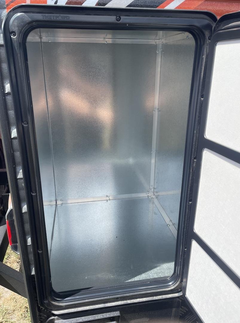 Twin front toolboxes with slides — practical, secure, and sleek