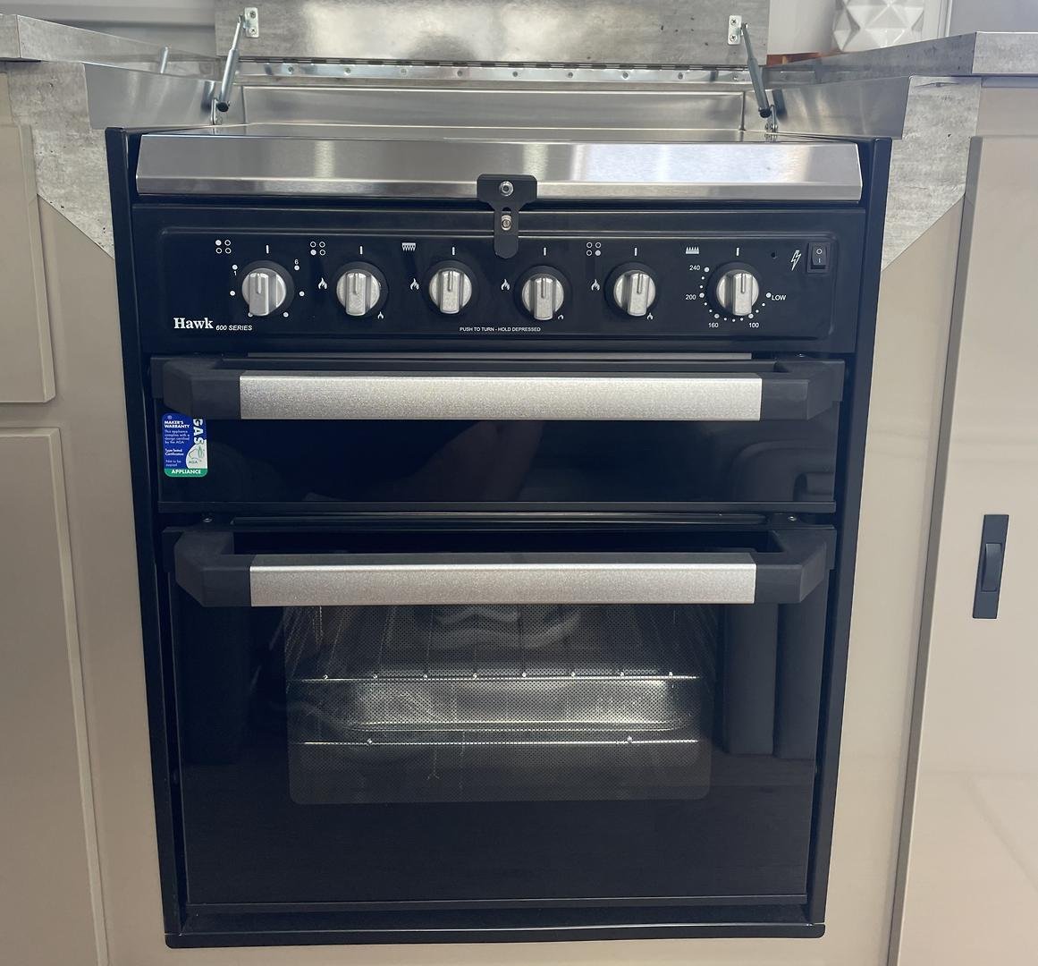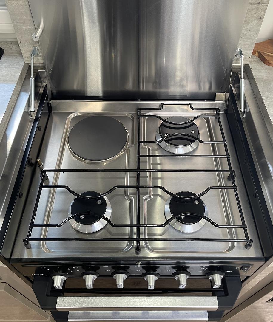 Full oven with 4-burner stove — create real meals, even off-grid