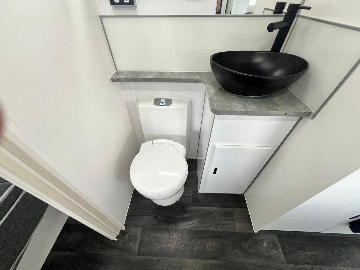 grey water bypass, SOG in the toilet, stacker windows in the bedroom.